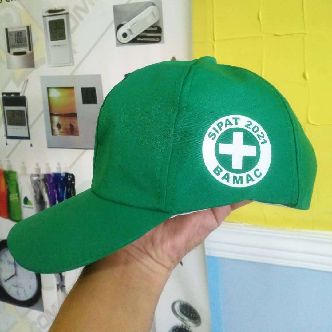 Boné em tactel. Regulagem plástica, velcro ou fivela metálica.