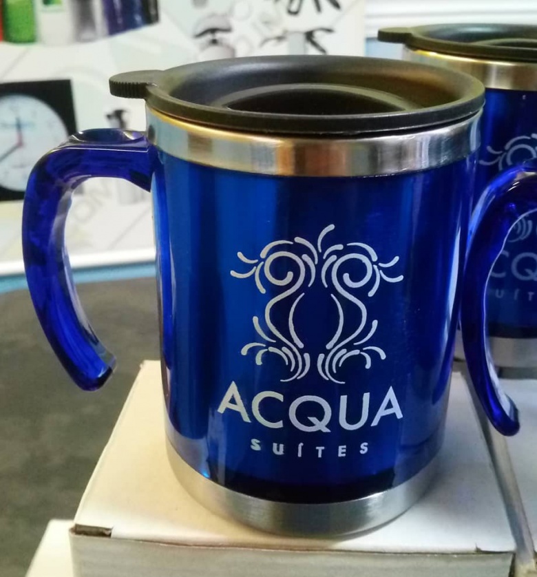 Descrição: Caneca acrílica térmica 400 ml com detalhe oval no pegador, revestimento interno e detalhes em inox. Tampa plástica resistente com sistema giratório para abertura. PEDIDO MÍNIMO: 50 UNIDADES