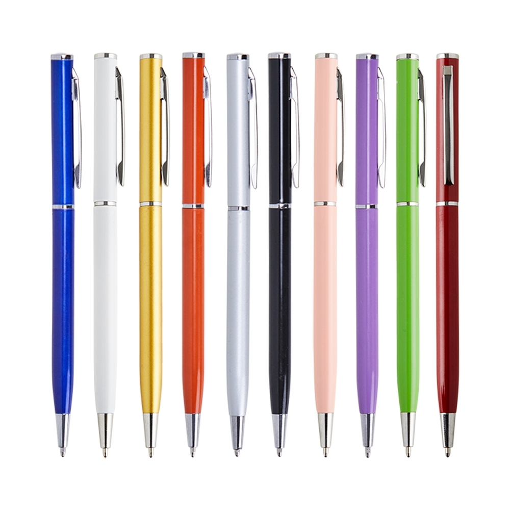 Descrição: Caneta metálica com carga esferográfica azul 1.0mm e acionamento por rotação. PEDIDO MÍNIMO: 100 UNIDADES