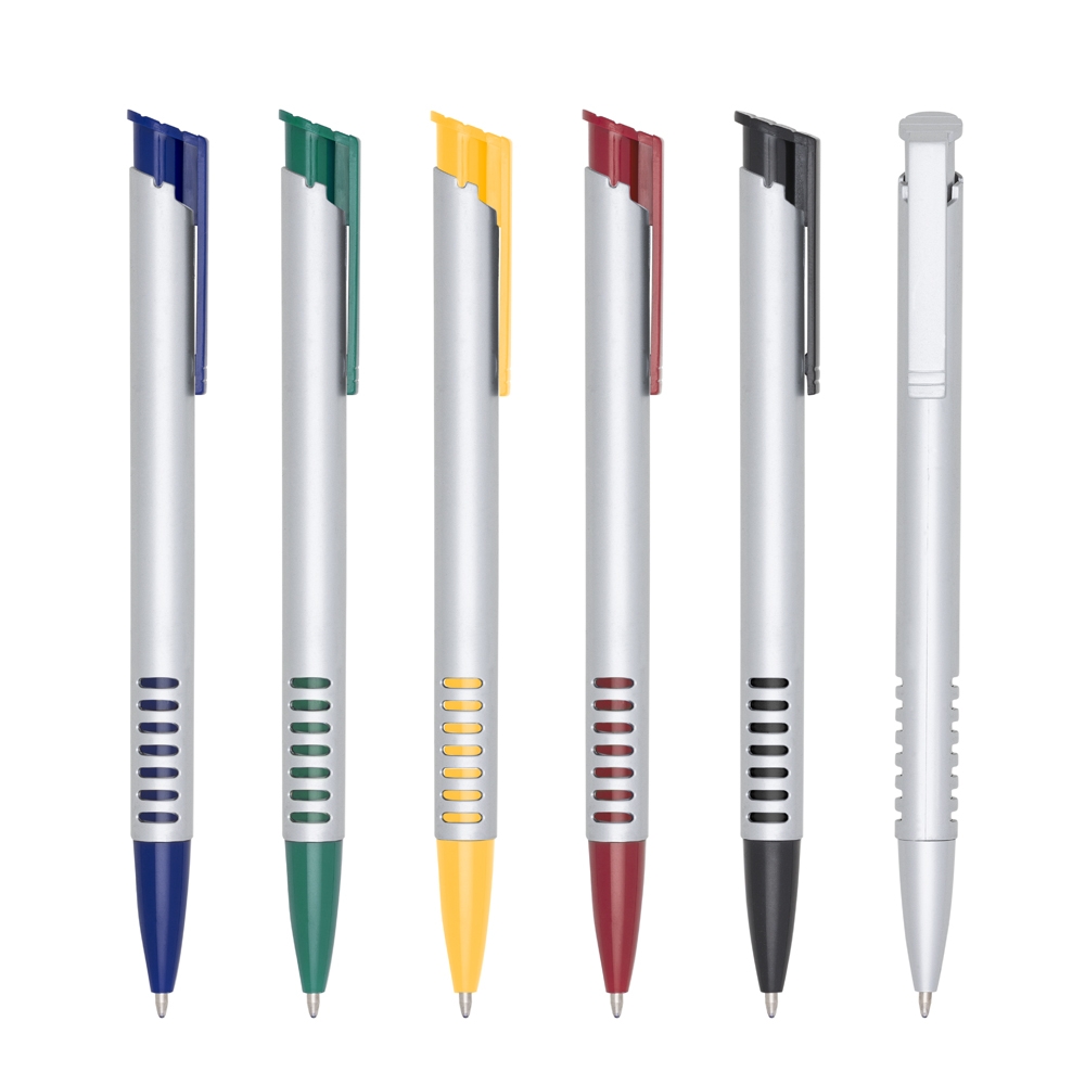 Descrição: Caneta plástica com carga esferográfica azul 1.0 mm e acionamento por clique.