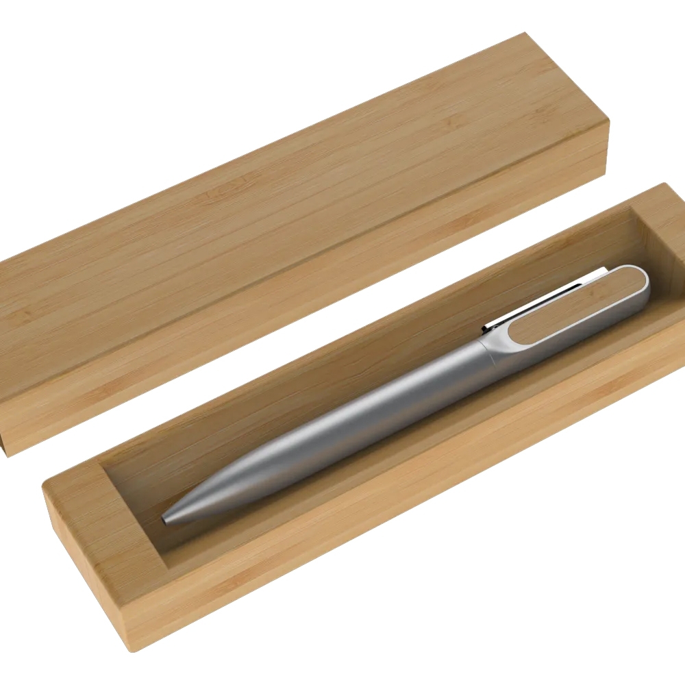Descrição: Estojo de papel para uma caneta com acabamento similar a bambu. OBS.: IMAGEM MERAMENTE ILUSTRATIVA, NÃO ACOMPANHA CANETA. PEDIDO MÍNIMO: 100 UNIDADES