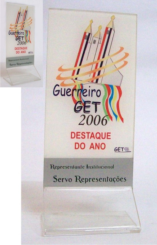 Troféu em acrílico tipo display com duas dobras. Medidas: 10/18 cm. Espessura: 2,3 mm PEDIDO MÍNIMO: 20 UNIDADES